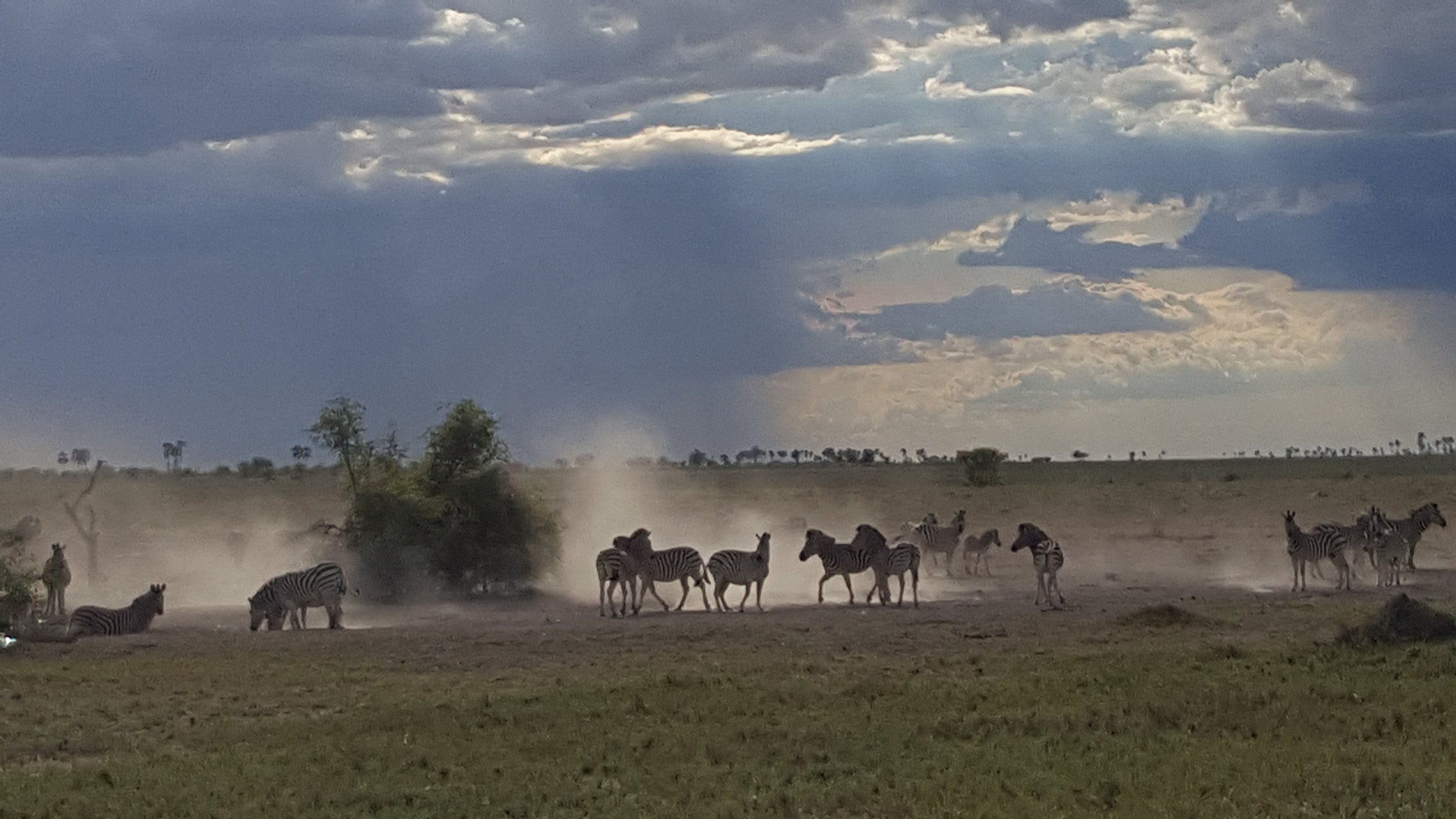 Camp 2 Botswana ....lots of #1 which of coarse means LOTS of #3. Mainly zebra and wildebeest .....100 + degrees....no electricity which meant hot afternoons and nights. Very old school...reminded me of a Bedouin oasis camp.....lovely staff....pool that you were VERY grateful to see in the afternoon heat especially since it was the perfect spot to view #1. First evening we were away from camp when a HUGE sand storm hit ......very exciting watching it approach from far away then get caught up in the wind and sand....thought my tent was going to fly into the night......reminded me why I HATE camping...hiked with bushman